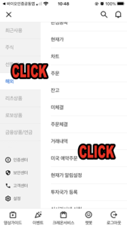 1.주식버튼에서 해외버튼을 클릭하고 미국 예약주문버튼을 클릭합니다.
