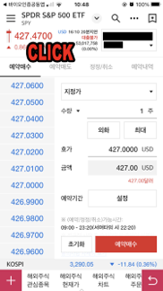 익일: 익일에 예약주문을 체결하여준다. 익일은 어플 아래쪽 화면에 적힌대로, 당일 15:05일에서 익영업일 07:00분입니다.
