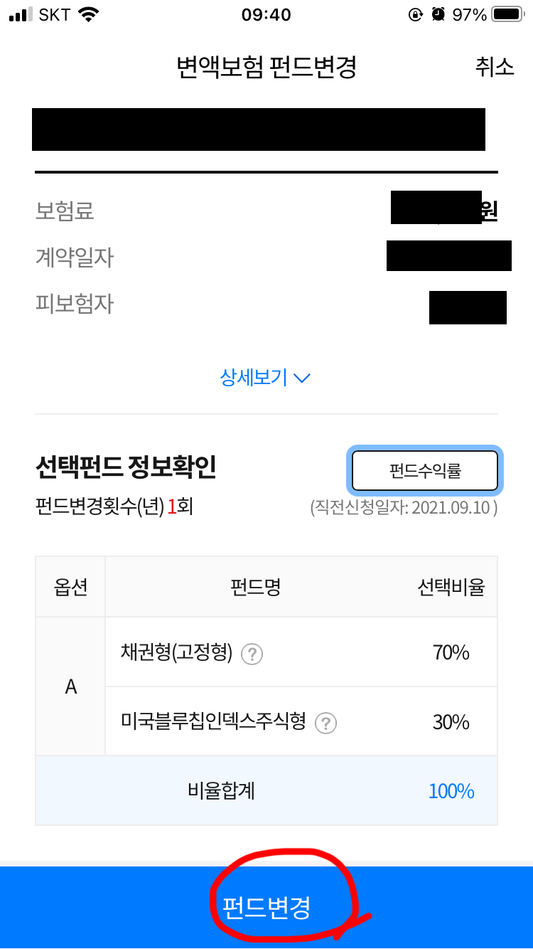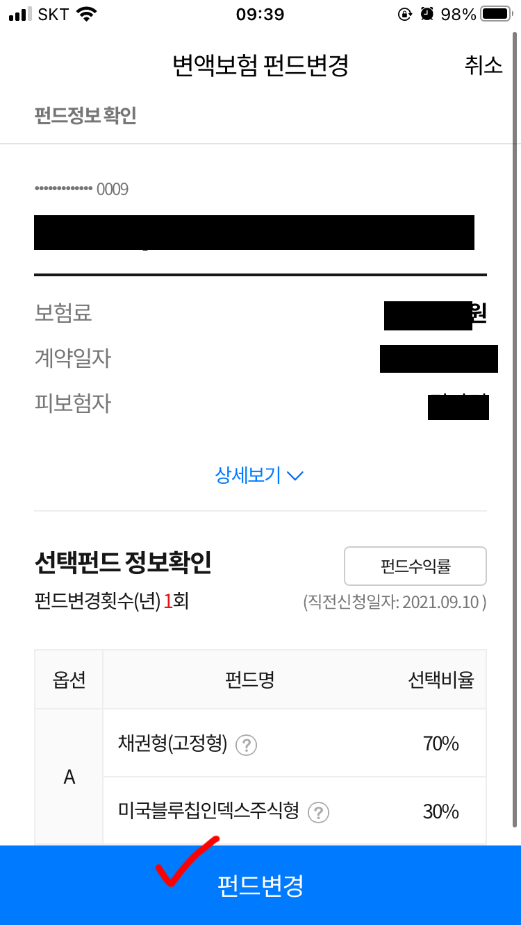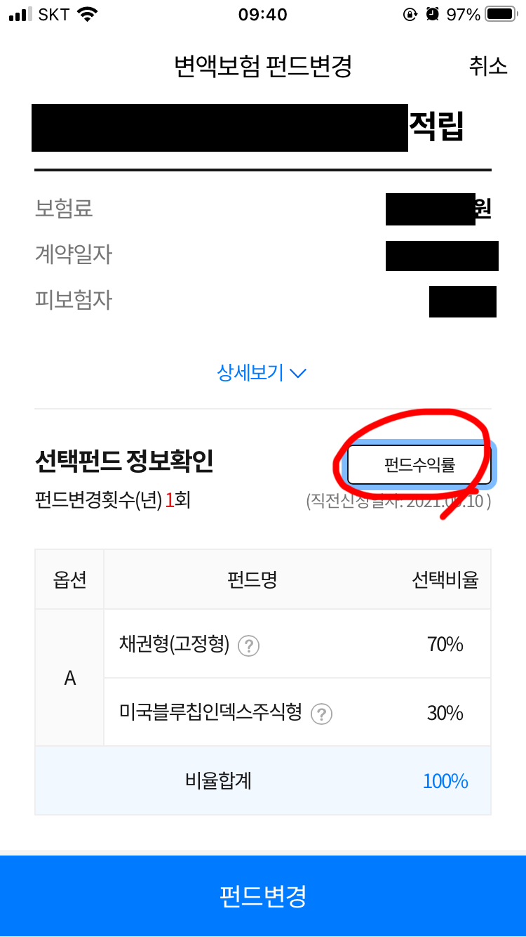 7) 하단의 ‘펀드변경’을 선택합니다.