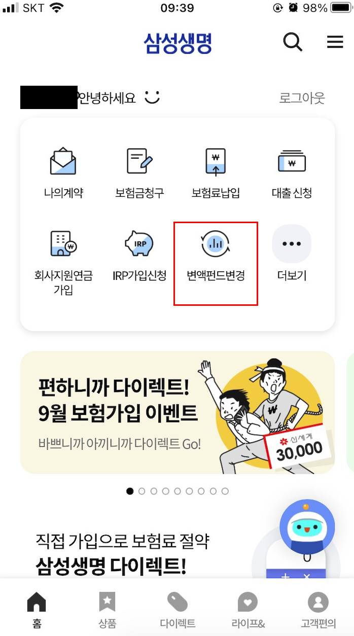 삼성생명 모바일 어플에서 변액연금의 펀드를 변경하는 법을 알아보겠습니다.