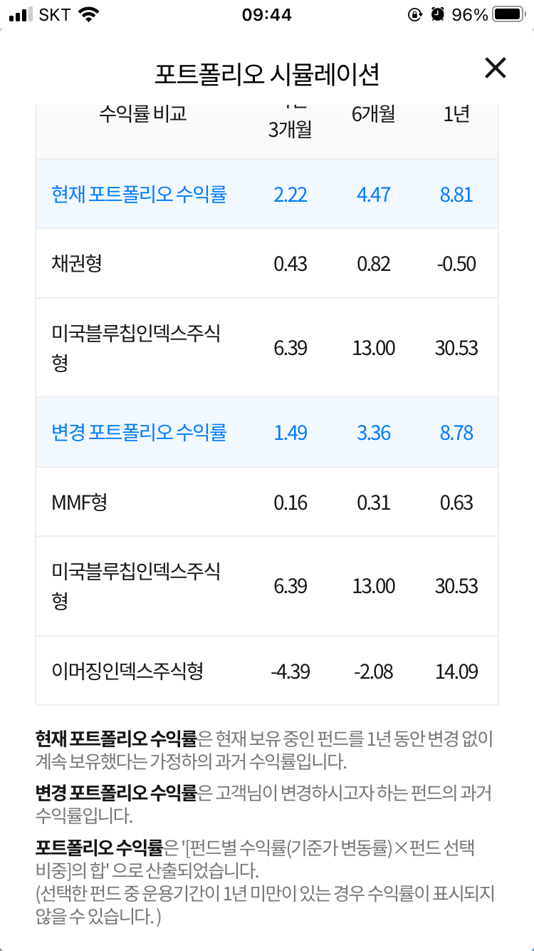 10) 포트폴리오 서비스를 선택했을 때 수익률을 시뮬레이션해보고
