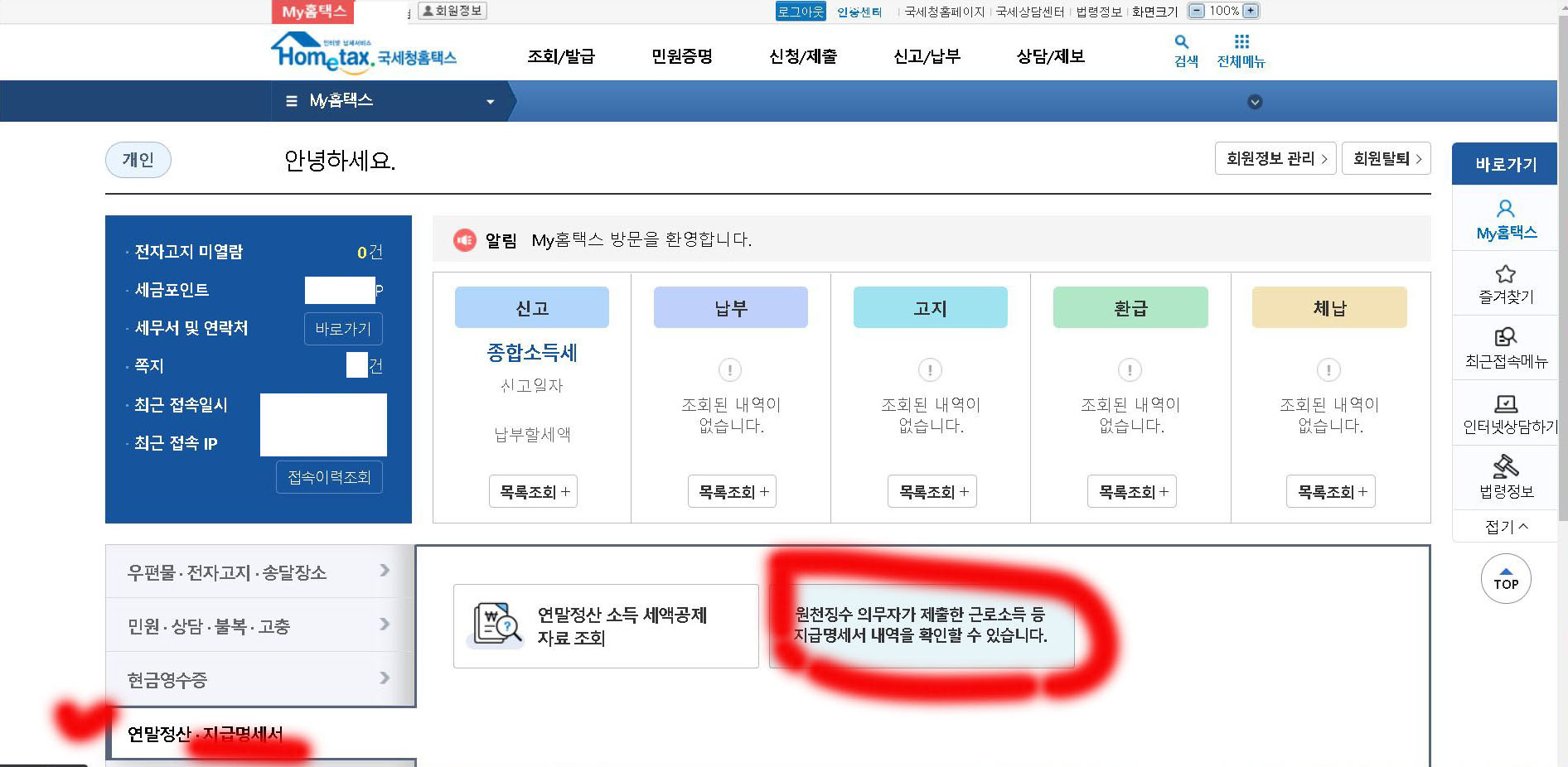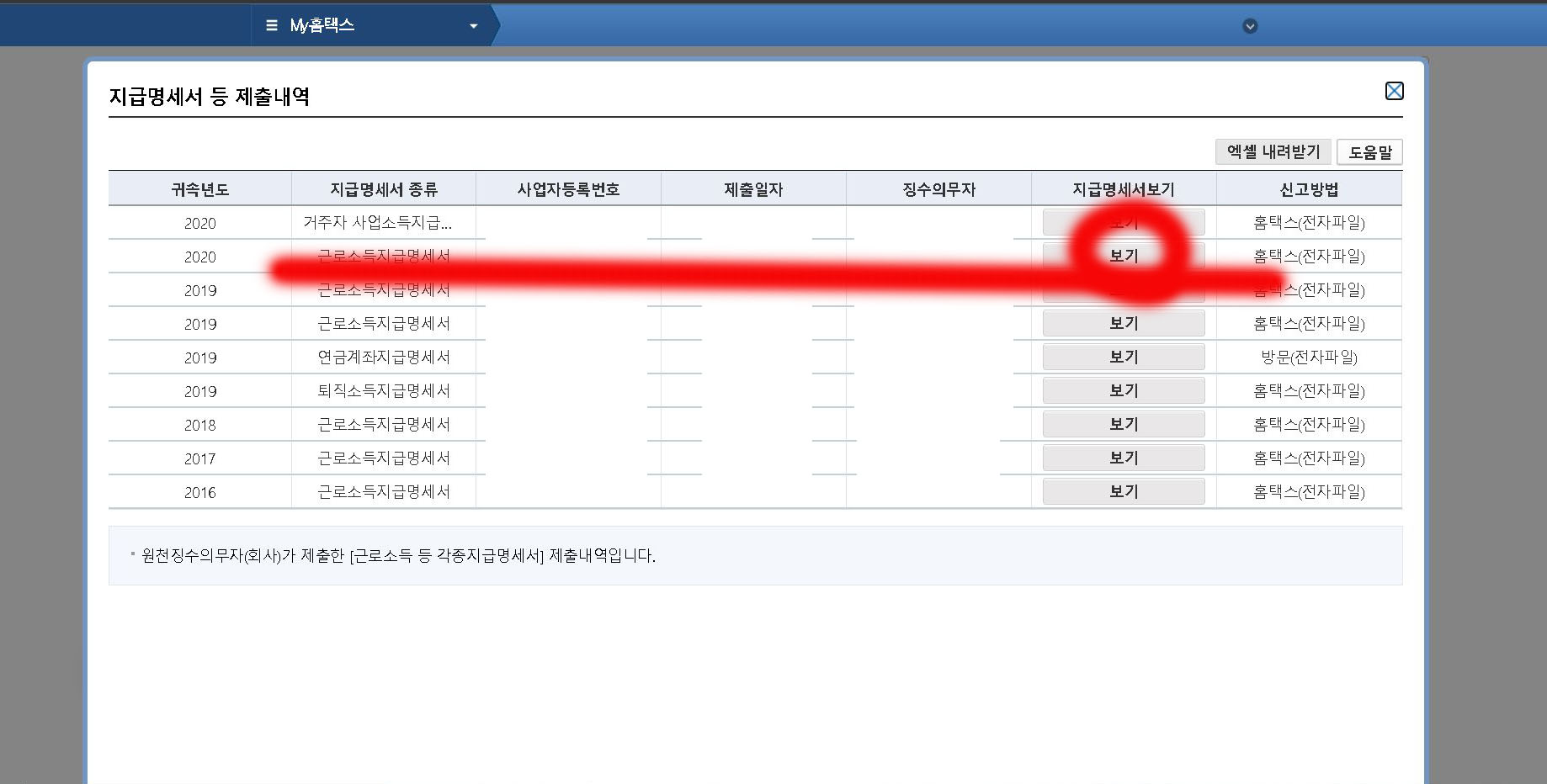 = 국세청 홈페이지에서 지급명세서 확인합니다.